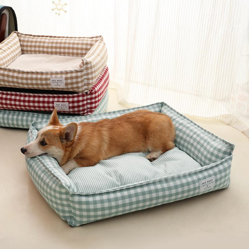 Product information: Color: light green plaid, dark red plaid, khaki plaid, bronzing bear Specifications: M(50cm * 40cm), L(60cm * 50cm), XL(75cm * 60cm) Material: cloth Applicable object: Dog