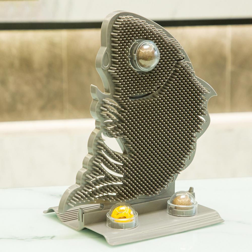 Designed with creative fish shape, the cat wall scratcher can well attract your cat's attention. With help of the self-grooming brush, it can be used to grind your cat's claws, massage their face, head and body so that they will not scratch the furniture.